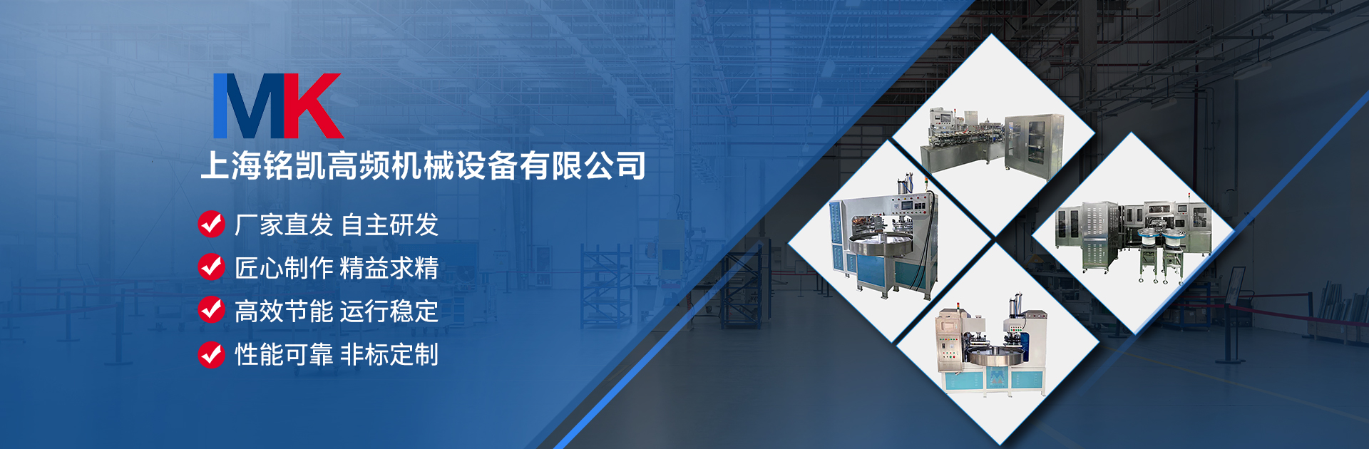 上海銘凱高頻機械設備有限公司是一家集研發(fā)、設計、制造、銷售及服務于一體的專業(yè)生產(chǎn)高頻···